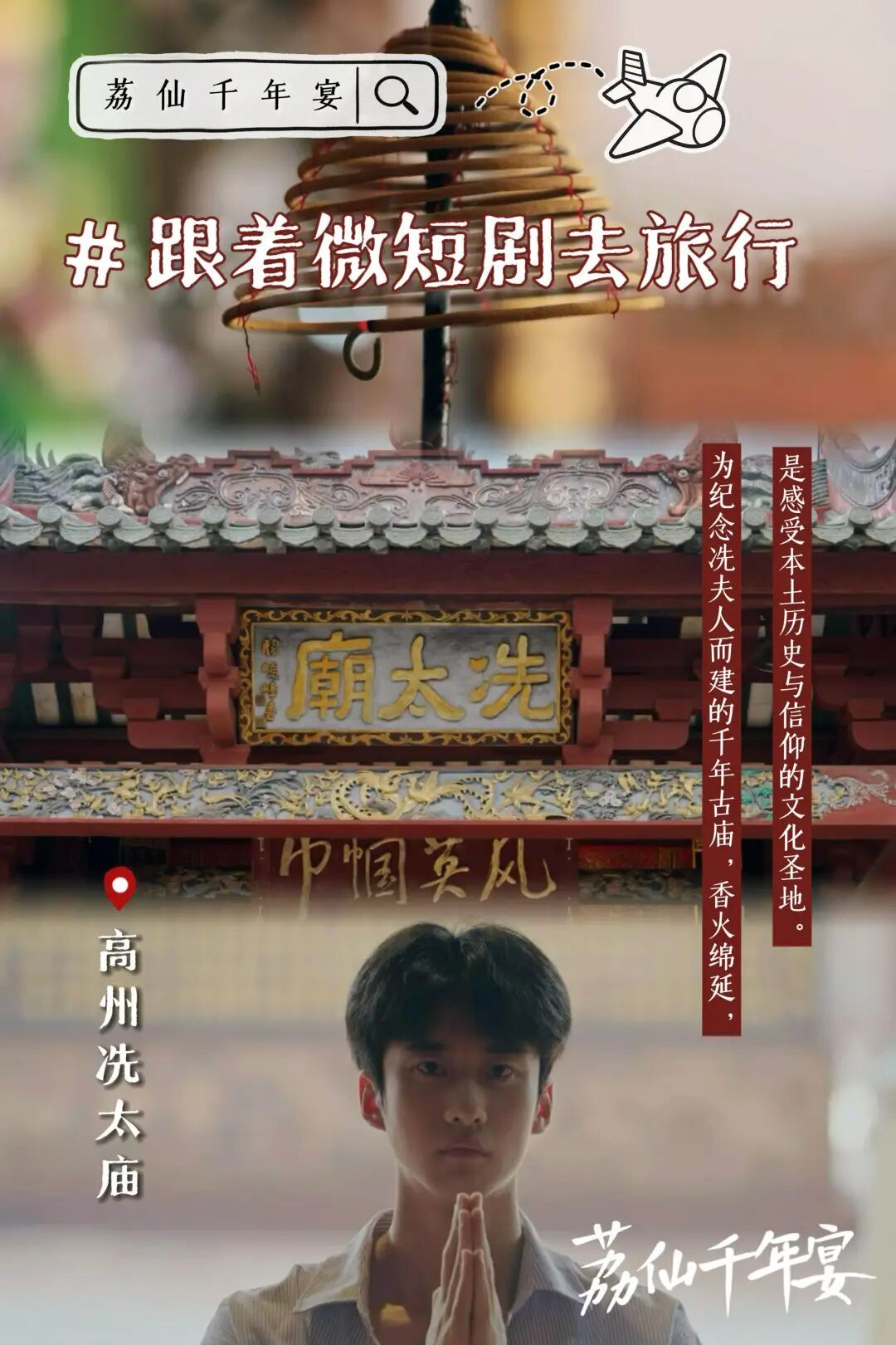 当程序员梁屹川在千年荔枝林中遇见神秘的荔枝仙,一段跨越古今的奇幻旅程便在高州这片热土上徐徐展开。由羊城晚报报业集团出品、华南农业大学珠江学院联合出品的首部原创微短剧《荔仙千年宴》近日正式上线,该剧全程在广东高州取景拍摄,不仅讲述了一段唯美爱情,更如同一部动态的“高州文化旅游指南”,以微短剧为媒介,深度推动文旅融合,让观众跟着剧情“穿越”高州,领略其独特的自然风光与厚重人文。